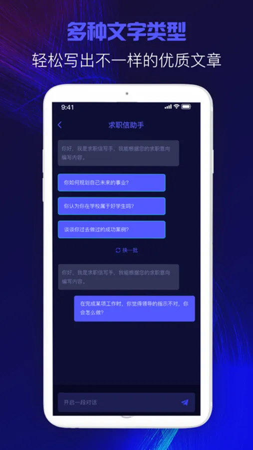 写作机器人是一种基于人工智能技术的智能写作工具,旨在协助用户轻松创造优质文本。它能够迅速生成各种文体,涵盖文章、新闻、邮件、报告等多种形式。通过分析用户提供的关键词和语义信息,机器人能够自动生成符合要求的文本,显著提升写作效率和文本质量。该工具的应用广泛,适用于企业、新闻媒体、个人创作者等领域。使用写作机器人,您将告别写作难题,轻松创作高水平文本,从而提高写作效率和质量。还有更多功能等待您的发现