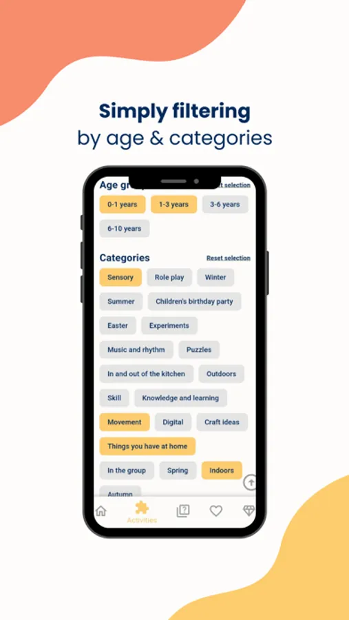 Filter activities by age groups and interests to quickly find the right one.