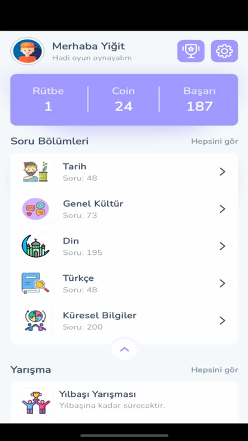 You will be able to learn, have fun and save coins and earn money with one-on-one competitions, group quizzes, word guesses and monthly general knowledge quiz competitions. You will see the contribution of History, General Culture, Turkish, Religion, Global and scientific knowledge to brain development by playing with our different question games. You will have fun and earn money by playing and having fun with your mind and brain power by knowing the country flags and capitals through question and answer with pictures and photos.