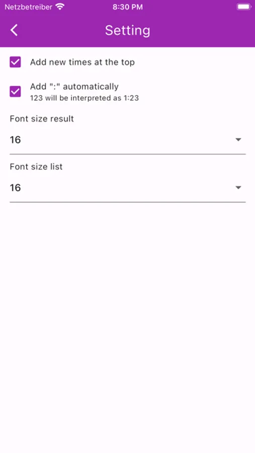 With the app you can easily add and subtract times. The times can be easily entered over the integrated keyboard.