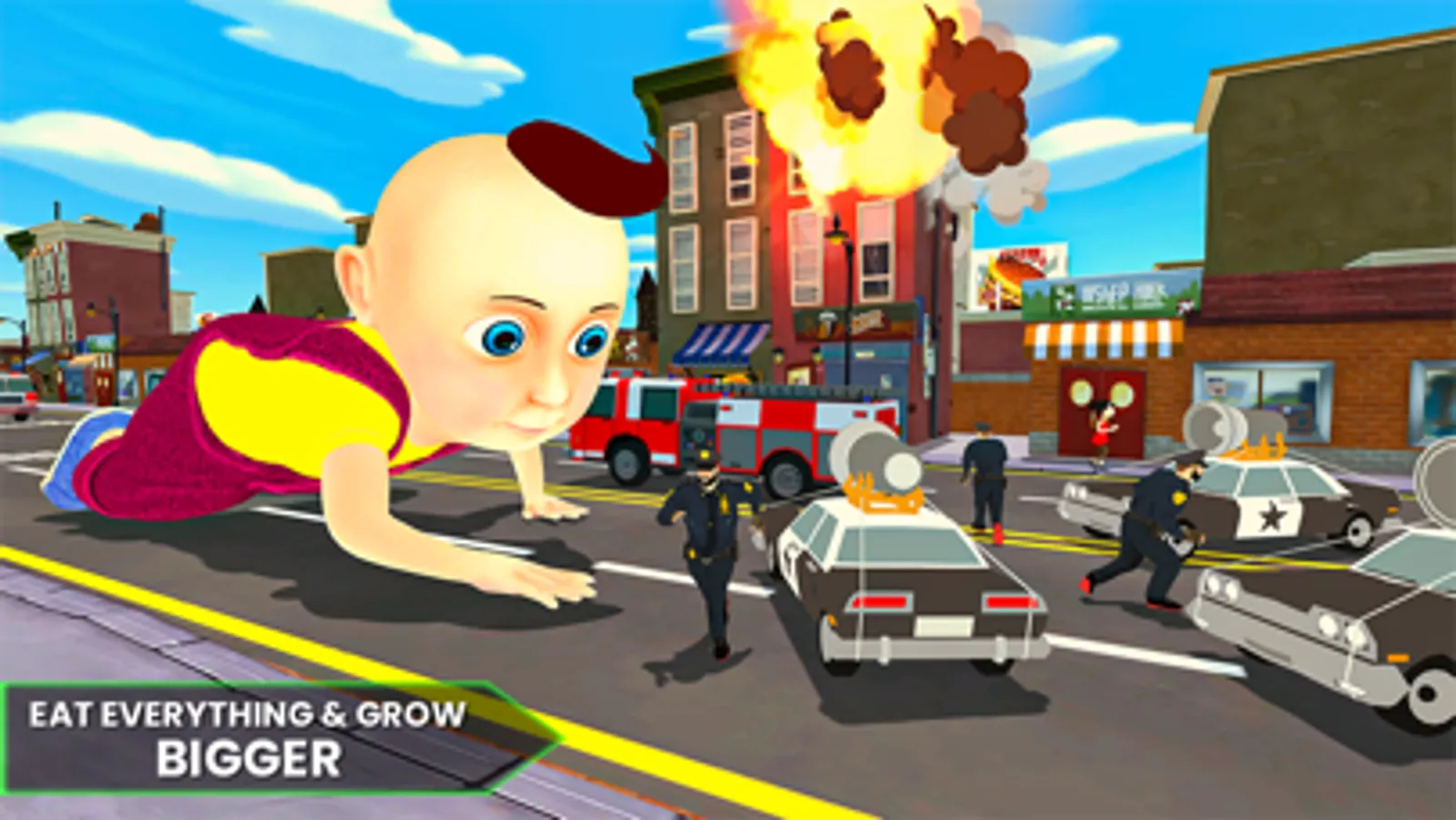 In the baby eating simulator game, the baby crawls in search of fast food, hides from people, eats fast food like burgers and chips and gains pounds.