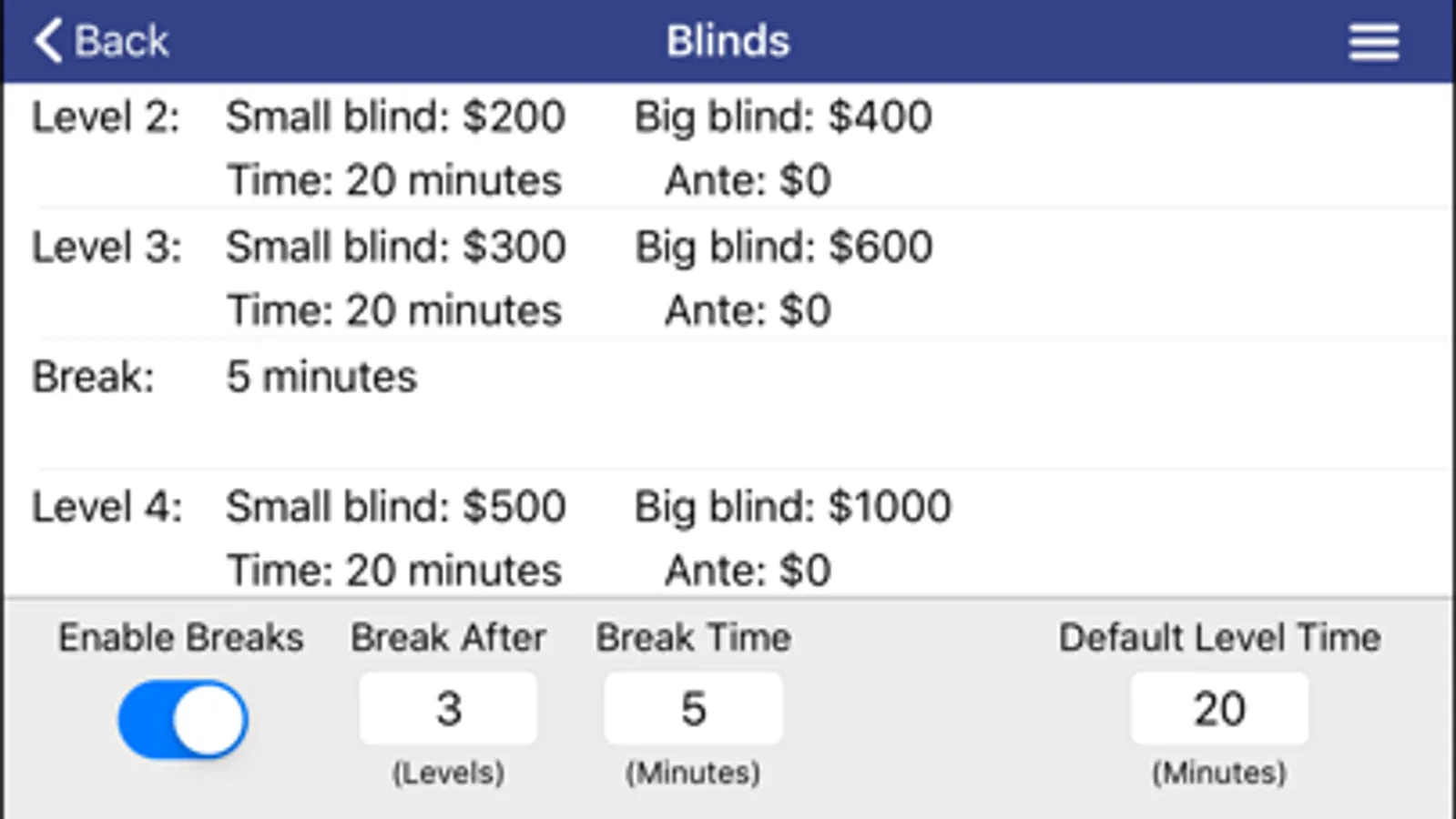 Both audio and visual alerts can be used to signal the end of a round and an optional 1 minute warning is available. Blinds can be easily edited to accommodate your own blind structure or use the provided blinds to quickly get started.