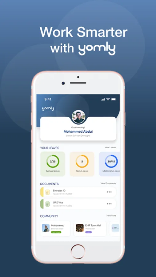 Yomly provides complete HR self service so every-one is more productive. With global documents and community, employees are better informed and engaged. With company directory in your hands employees are better connected.