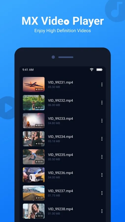 HD MX Player could detect all local videos in internal storage. Built-in powerful and intuitive multimedia files manager with automatic identification of all video files on your device.