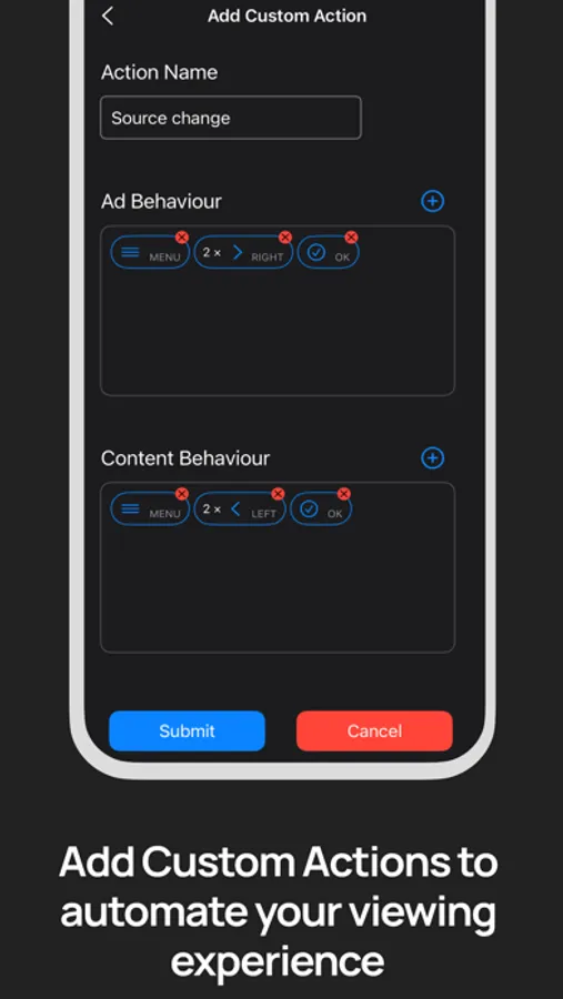 3. Add custom actions to automate what should happen when ad comes and what should happen when content comes back.