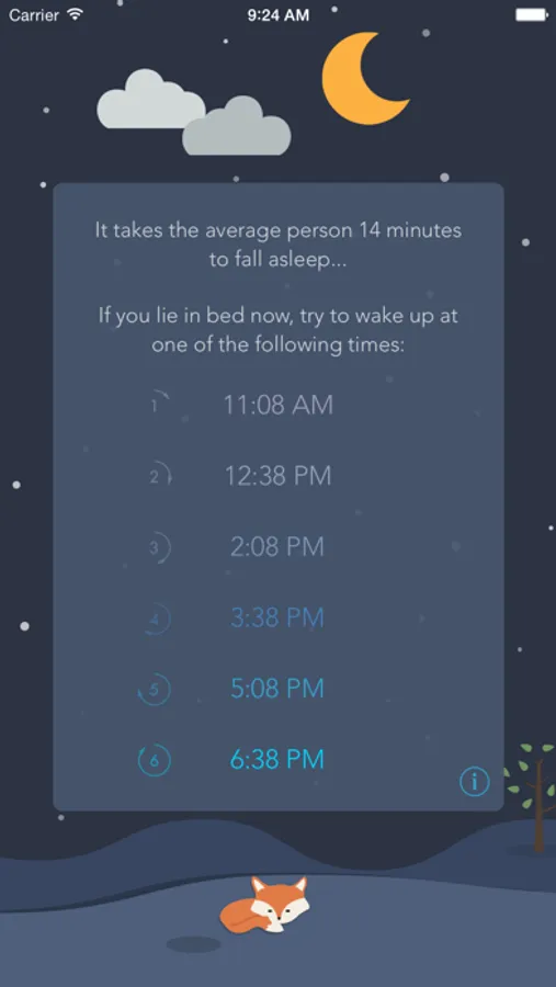 Sleepytime helps you figure out when to go to sleep and when to wake up, by estimating sleep cycles based on 90 minutes each.