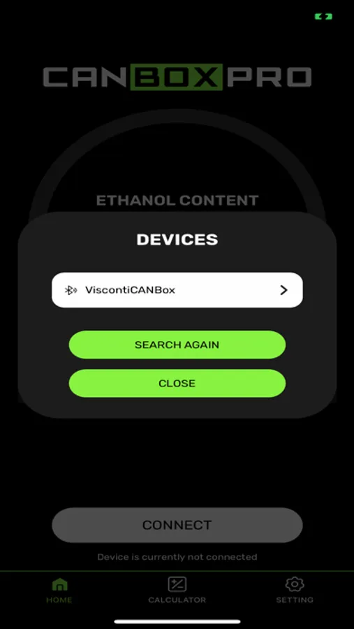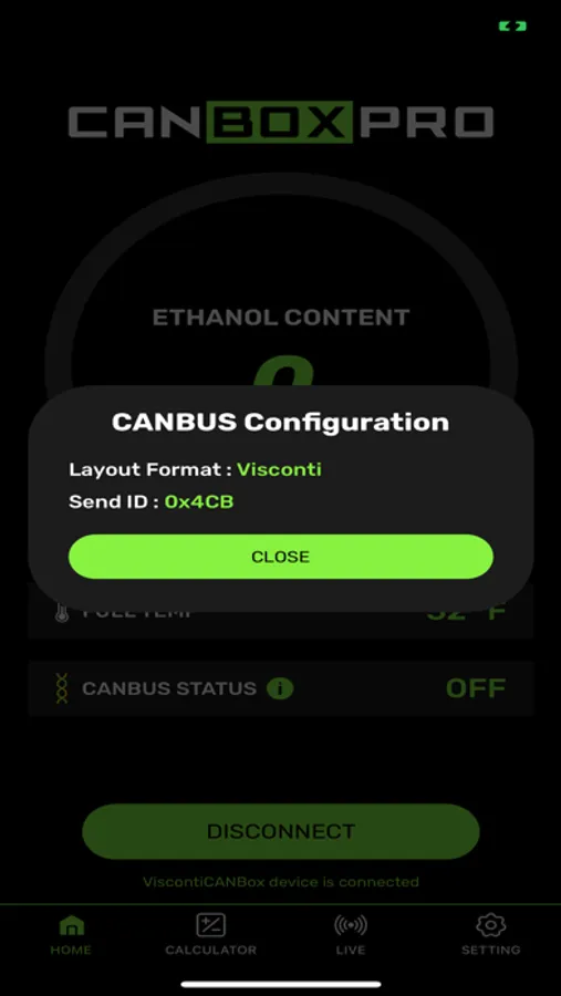 CANBOXPRO allows you to wirelessly view your current ethanol content from your Continental Ethanol sensor.