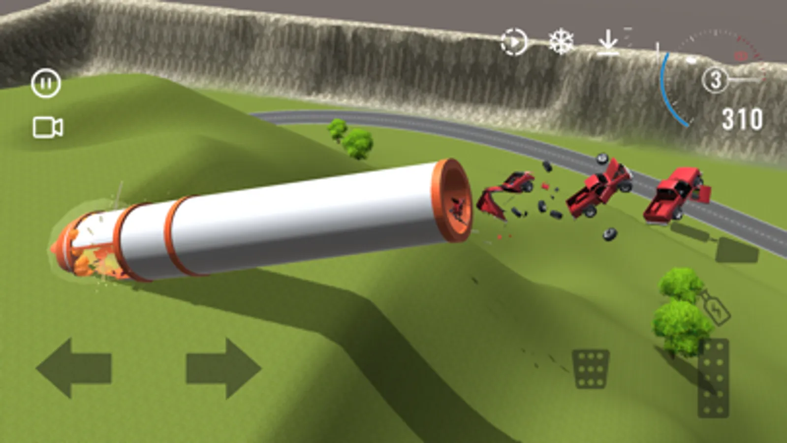 Launch destroyable vehicles from high slopes, jump on trampoline and watch the car being destroyed in slow motion.