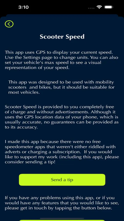 Scooter Speed is a simple speedometer app that uses your phone's GPS receiver to calculate your current speed and measure your travelled distance. It is completely free, with no adverts or any data collection/tracking. I made this app because there were no free speedometer apps that weren't either riddled with adverts or charging a subscription. Hope you find it useful!