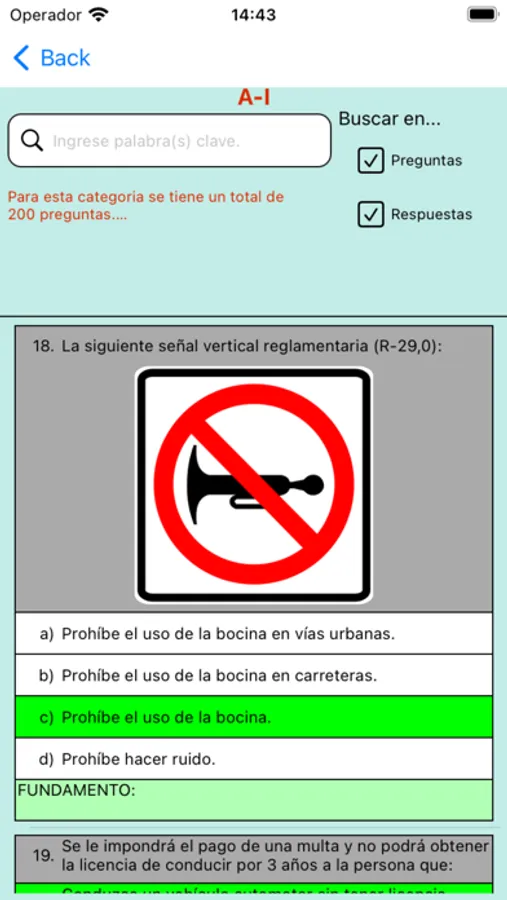 Incluye un buscador para poder encontrar de manera rápida cualquier pregunta o respuesta ingresando palabras clave.