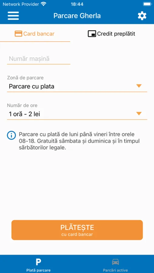 Aplicația permite achitarea tarifelor pentru utilizarea ocazională a parcărilor publice.