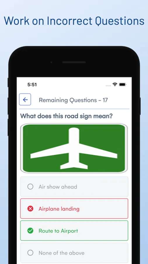 - You can track how many questions you have done correctly, incorrectly, and get a final passing or failing score based on official passing grades