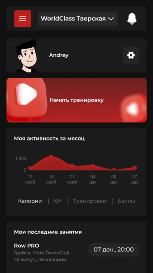 TRIDE - Цифровая платформа для indoor тренировок.