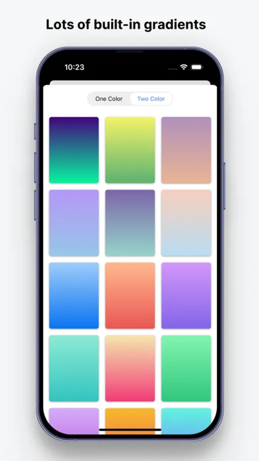 1.DIY gradient color: Customize solid color and multi-color gradient wallpaper by selecting colors from the palette.