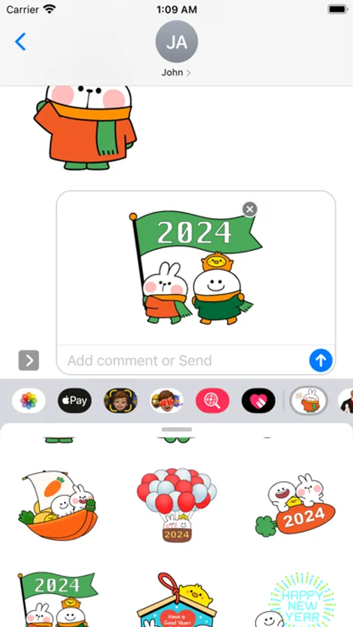 • Use stickers in chat—Tap to send, or touch and hold to put stickers on top of a bubble, other stickers, photos, and videos.