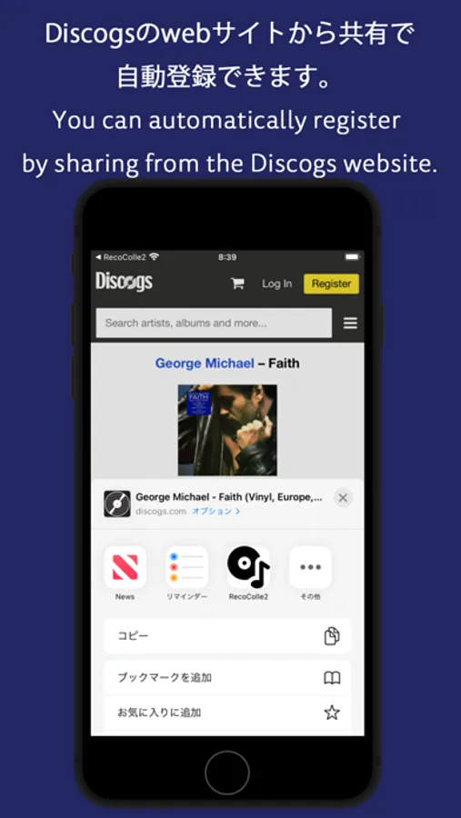 You can manage records, CDs, etc. You can register by sharing the selected album from Discogs.There is also a backup and restore function for registered data.