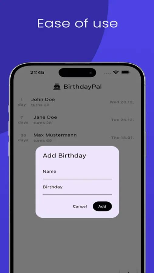 Privacy Policy: http://ingo-augsten.de/apps/birthdaypal/privacy_policy.html