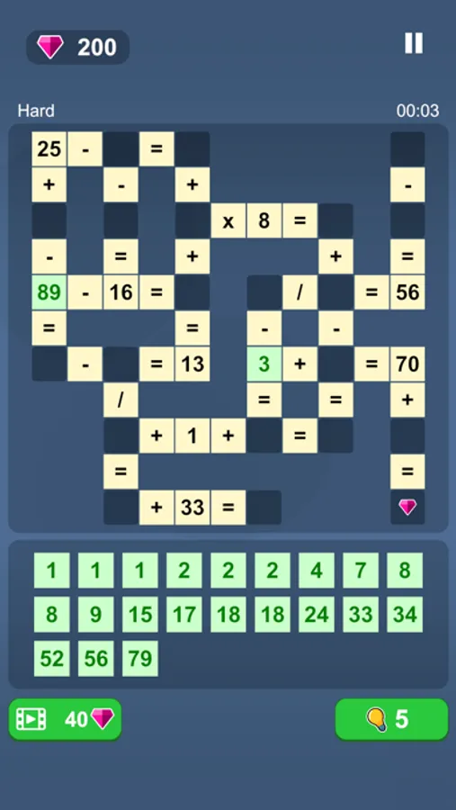 The best math crossword game is Math Cross. This is a math game to train your brain. Play anywhere and anytime because the game is free and does not require internet.
