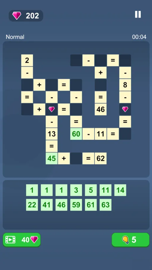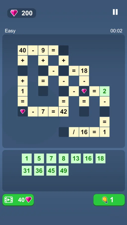The game will test your math problem solving skills, there are different difficulty levels, collect crystals to use hints.