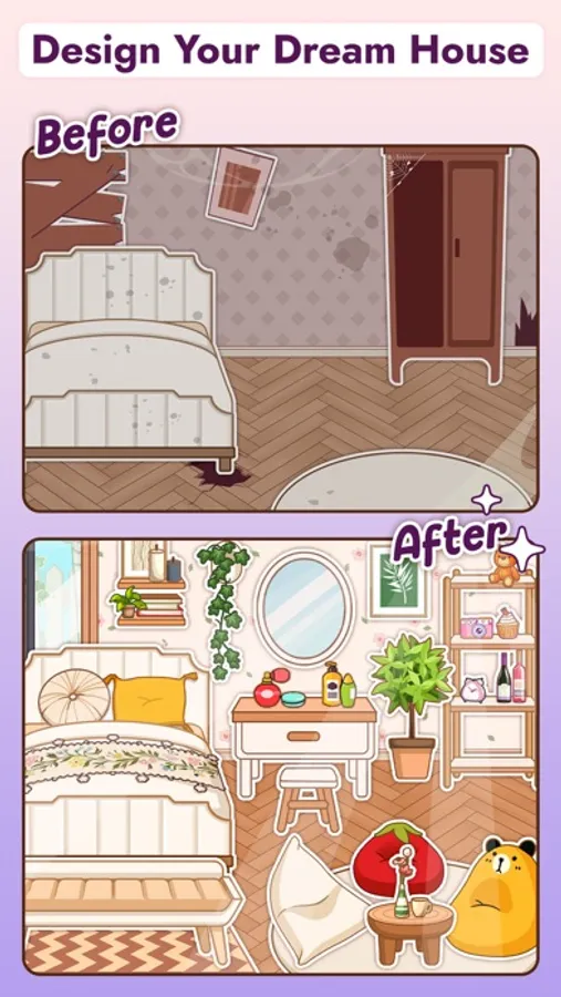 Unleash your interior design prowess as you curate a dream house for your chibi dolls. Shape cozy bedrooms, stylish living areas, charming play spaces, and delightful makeover zones, turning your doll's house into a realm of magic and beauty fit for a fashion princess.