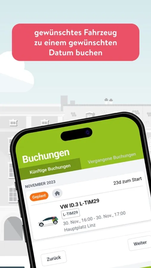 Mit der tim Linz-App kannst du rund um die Uhr ein tim-Fahrzeug buchen – wann und wo du willst. Die Zugangsdaten erhältst du nach persönlicher Anmeldung im tim- Servicecenter in der Wiener Straße 151, 4021 Linz, oder einem Einschulungstermin via Videokonferenz. Dafür kannst du dich hier voranmelden oder uns unter 0732/3400-7733 kontaktieren.