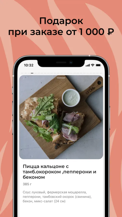 При заказе от 1000 рублей, пицца кальцоне с тамбовским окороком в подарок