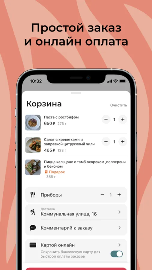 Собственная доставка, отслеживание курьера в режиме онлайн.