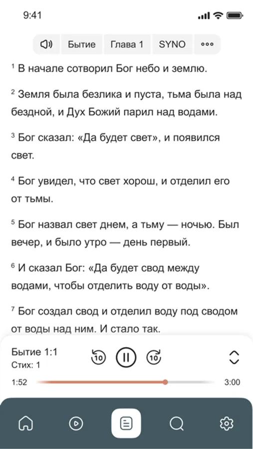 Читайте тексты Библии в современном русском переводе, выполненном институтом перевода Библии в Заокском. Быстрый поиск. Удобный шрифт. Слушайте аудиоверсию перевода в исполнении актёра театра, кино и дубляжа Семёнова-Прозоровского Н. Ю. Используйте уже имеющиеся планы Всемирной Церкви.