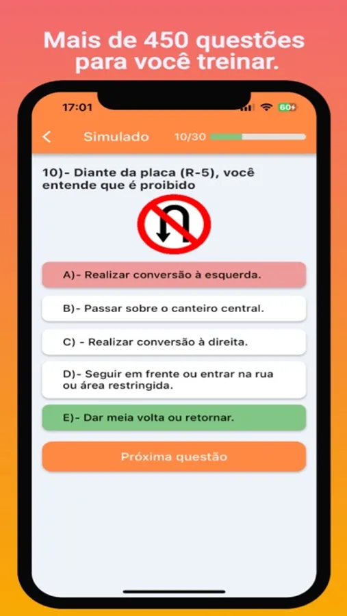 Com centenas de questões atualizadas e uma interface moderna, você aprende tudo o que precisa para passar na prova teórica da CNH.