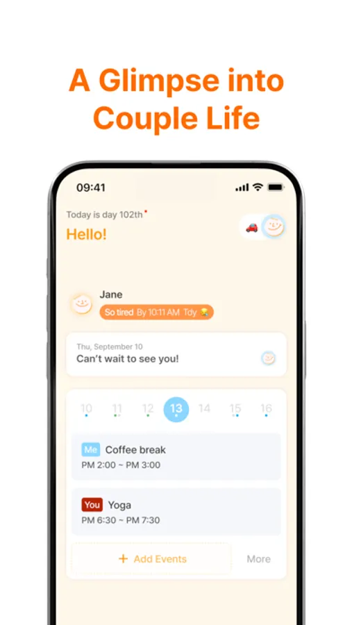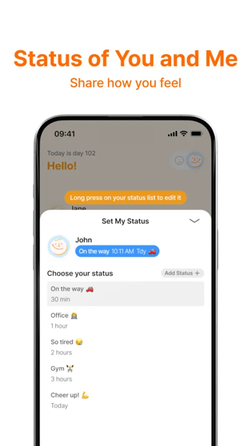 Use emotion icons and notes to let your partner know how you feel in real-time.