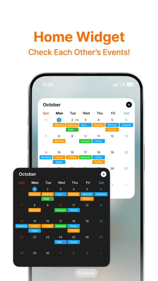 Check your couple’s schedule right from your home screen with the handy calendar widget.