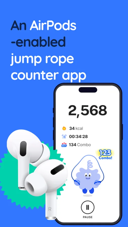 Jumpee is your adorable jump rope pal with automatic AirPods counting, cute badge rewards, game center leaderboards and a sweet character sharing feature—keep the fun going with friends!