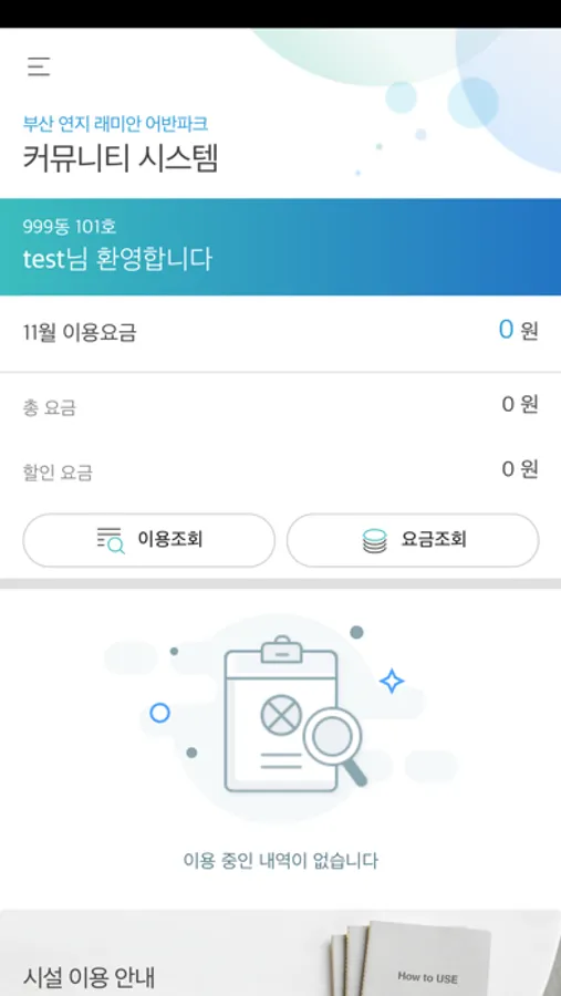 커뮤니티센터를 방문하여서 입주민 등록 후 애플리케이션 사용이 가능합니다.
