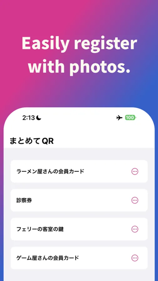 This app allows you to easily manage all your coupons (membership cards, point cards, etc.)'s QR codes and barcodes in one place.