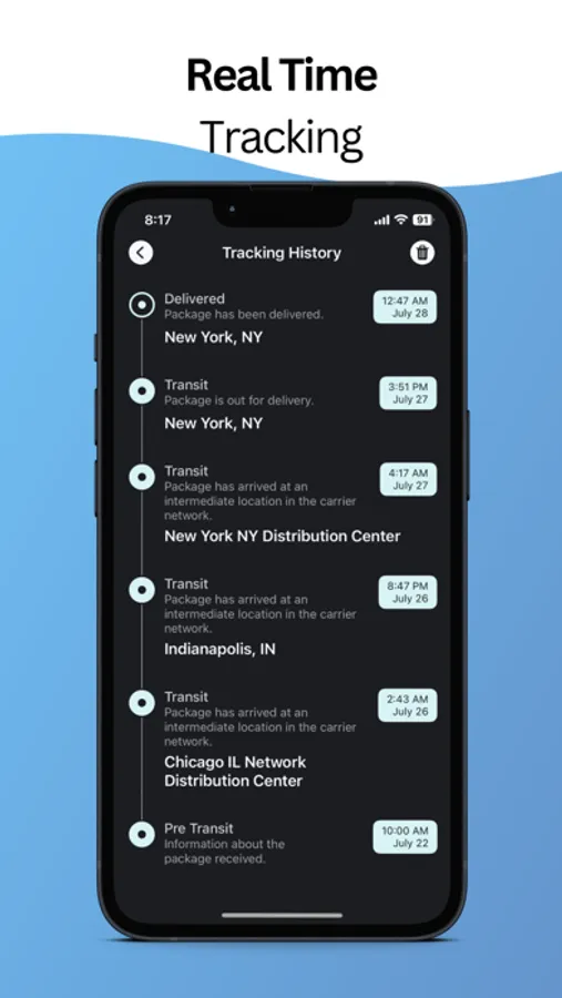 - View detailed tracking histories for each package.