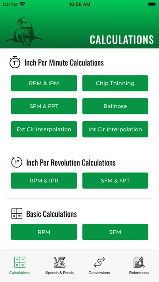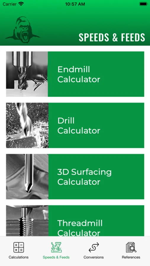 The Gorilla Machinist Pro App immediately configures running parameters to put you right in the wheelhouse of all the Gorilla Mill family of cutters. Accurate, dependable, and living on the hairy edge for those “other” end mill and drill lines. RPM, IPM, SFM and Chimp-Loads are calculated at the blink of an eye. A wide variety of machining materials, with no cumbersome long-winded questionnaire asking if all the planets are aligned or if your coolant stinks. And now it’s new and improved! WHAT you say? Yerp, it’s chalked full of calculations and formulas for everything machining so you too can be a “Rock Star” on the shop floor. Walk onto the shop floor with the confidence and swagger of Connor McGregor walking into the Octagon. Share your findings with friends, co-workers, and family…or DON”T and just tell folks it’s all in your noodle upstairs!