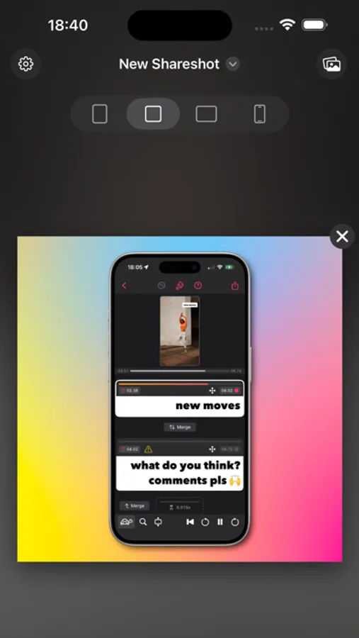 * Siri "App Shortcut" support for saying "New Shareshot" to frame the last screenshot, opens the app ready for you to tweak the background.