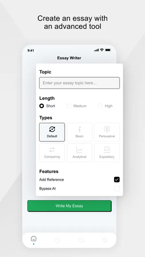 Our AI essay writer application also provides a Bypass AI feature that helps you to write undetectable AI essays and an Add References feature.