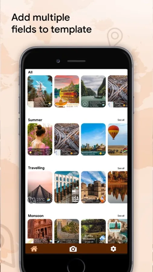 It’s very simple to use GPS Map Camera, when application start, GPS information including latitude, longitude, time, weather and compass will be displayed on the camera preview. Also you can choose different templates it will give you a beautiful look to the picture.