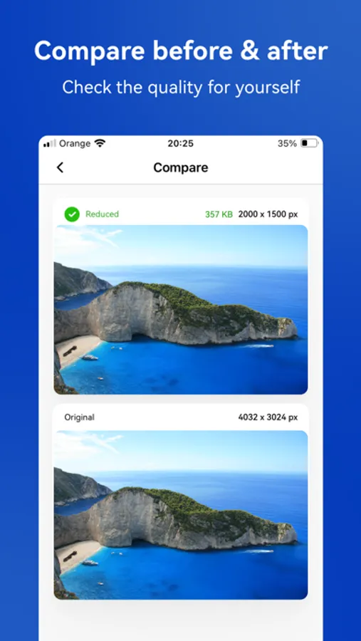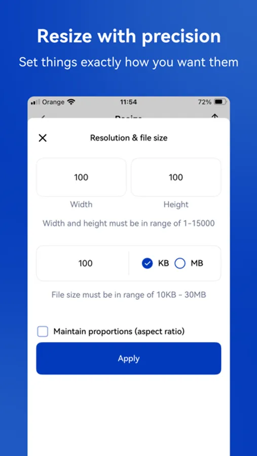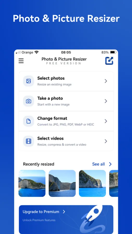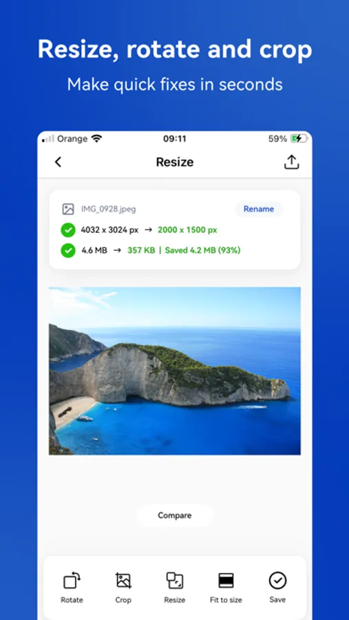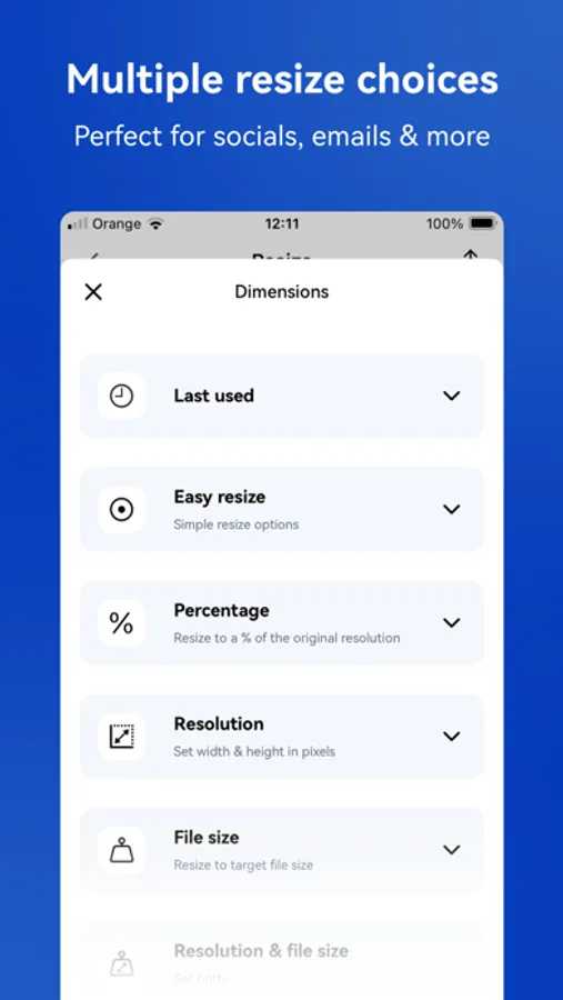 Resize photo size in a fast and easy way! The easy-to-use image resizer app helps you quickly downsize photo size or resize photo resolution. It can be used for text messages, e-mails, Instagram, Facebook, web forms, etc to adjust photo size.