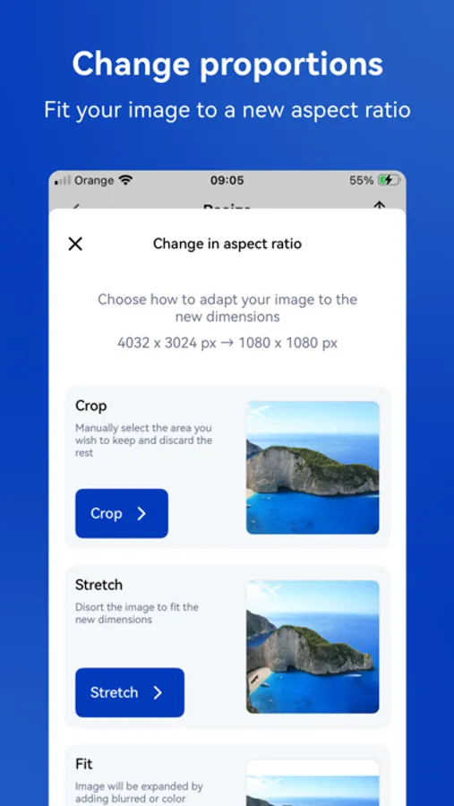 Image resizer for your device is a utility app that lets you downsize photos by selecting the right resolution. Photo resizer is an app designed to help you resize images quickly and easily. Image resizer performs one simple task like resizing the image in a fast and easy-to-use way. This image resizer maintains the picture aspect ratio by providing a resolution list based on camera resolution. Photo resizer helps you resize photos before posting them on Instagram, Facebook, Twitter, Pinterest, Reddit, Tumblr, Google+, VKontakte, KakaoTalk, etc.