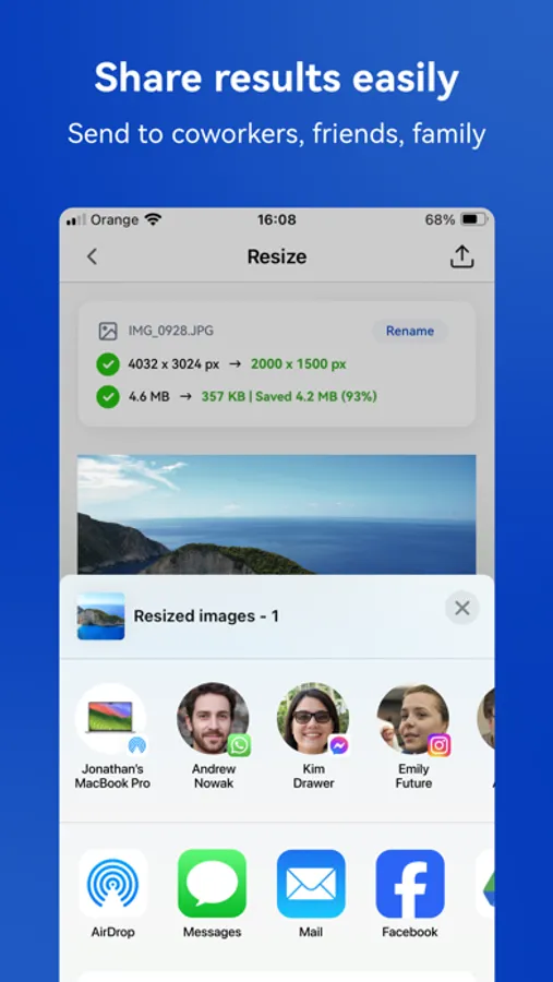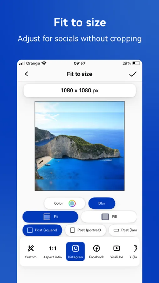 ● Downsize photo for Instagram, Facebook, Whatsapp, printing