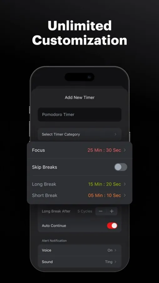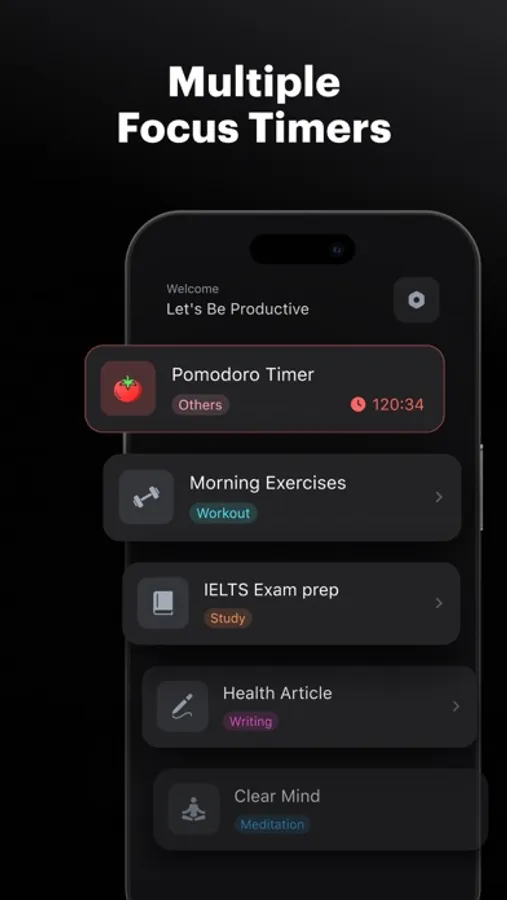 Besides other traditional focus timer apps, our app actually includes the default pomodoro timer, but also allows you to create your own timers and customize the length of your focus session, short break, long break, etc.