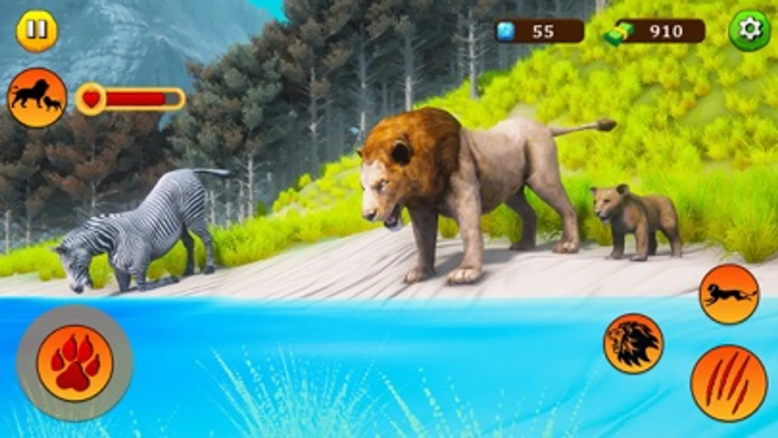 In the Lion Simulator Survival game, you will have the opportunity to explore the jungle and face all the adventures that you will face in your journey. You can train your Loin in the jungle to live like a king. There are also challenges for you that will be dangerous for you. You must keep your kids safe from wild animal attacks in jungle life.