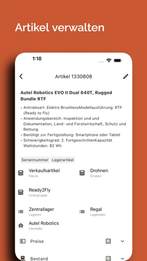 Artikel können von unterwegs erfasst, bearbeitet im Detail betrachtet werden.