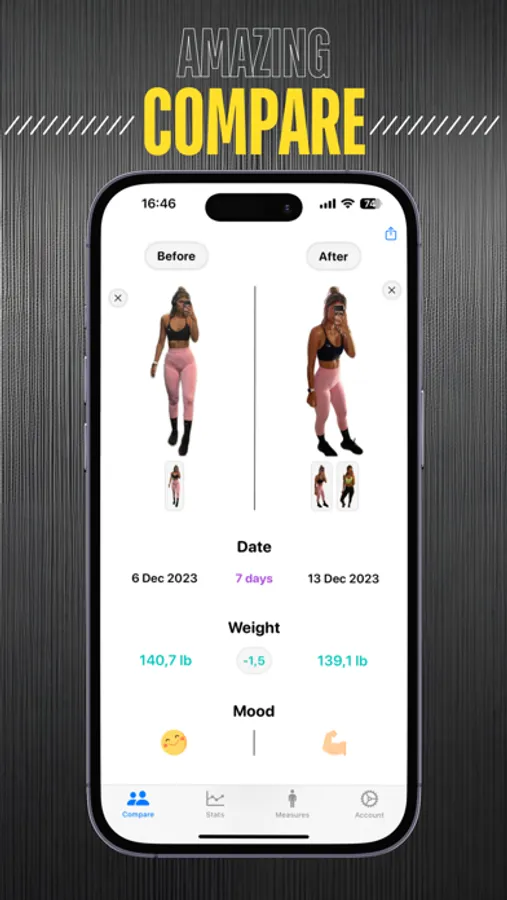 - Easily juxtapose different time points of your journey with our before/after comparison feature. This powerful visual tool allows you to directly observe your transformation, boosting your motivation.
