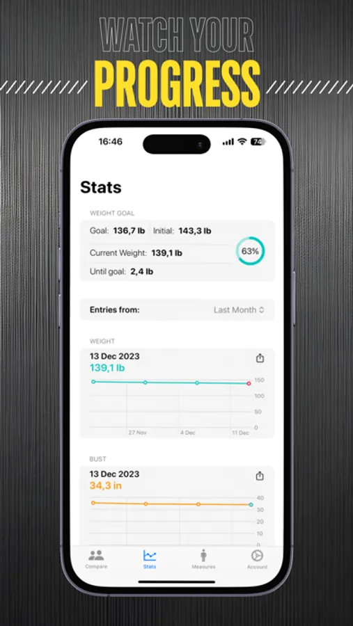- Engage with visually appealing charts that reflect your weight and body measurement journey. These charts provide a clear, motivating overview of your achievements and fitness progress.