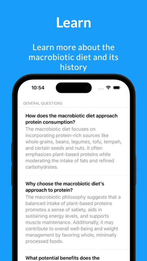 Explore the essence of macrobiotic dining with our comprehensive app! Discover a treasure trove of easy-to-follow breakfast, lunch, dinner, and snack recipes curated for a balanced lifestyle. Mark your favorites, effortlessly discover new dishes with smart ingredient search, and unlock the potential of your fridge’s contents. Delve deeper into macrobiotic principles through our insightful FAQs section. Elevate your wellness journey with our app's intuitive features and nourish your body with wholesome, fulfilling meals.