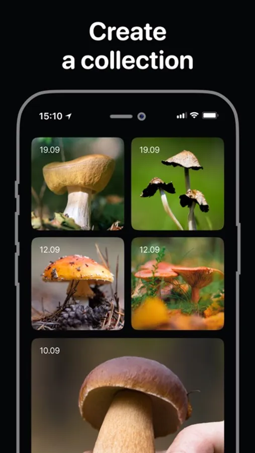 Additionally, you can efficiently manage and share your cataloged mushrooms using the in-app collection feature.