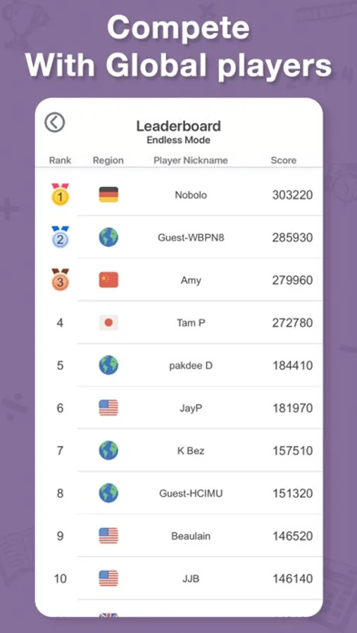 -Challenge the endless mode and compete with global players for rankings. The higher the level, the more points you get!